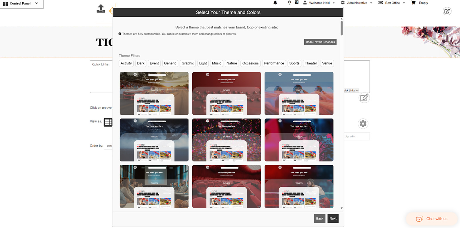 - Support seating charts, general admission, season passes, memberships and recurring event setups.