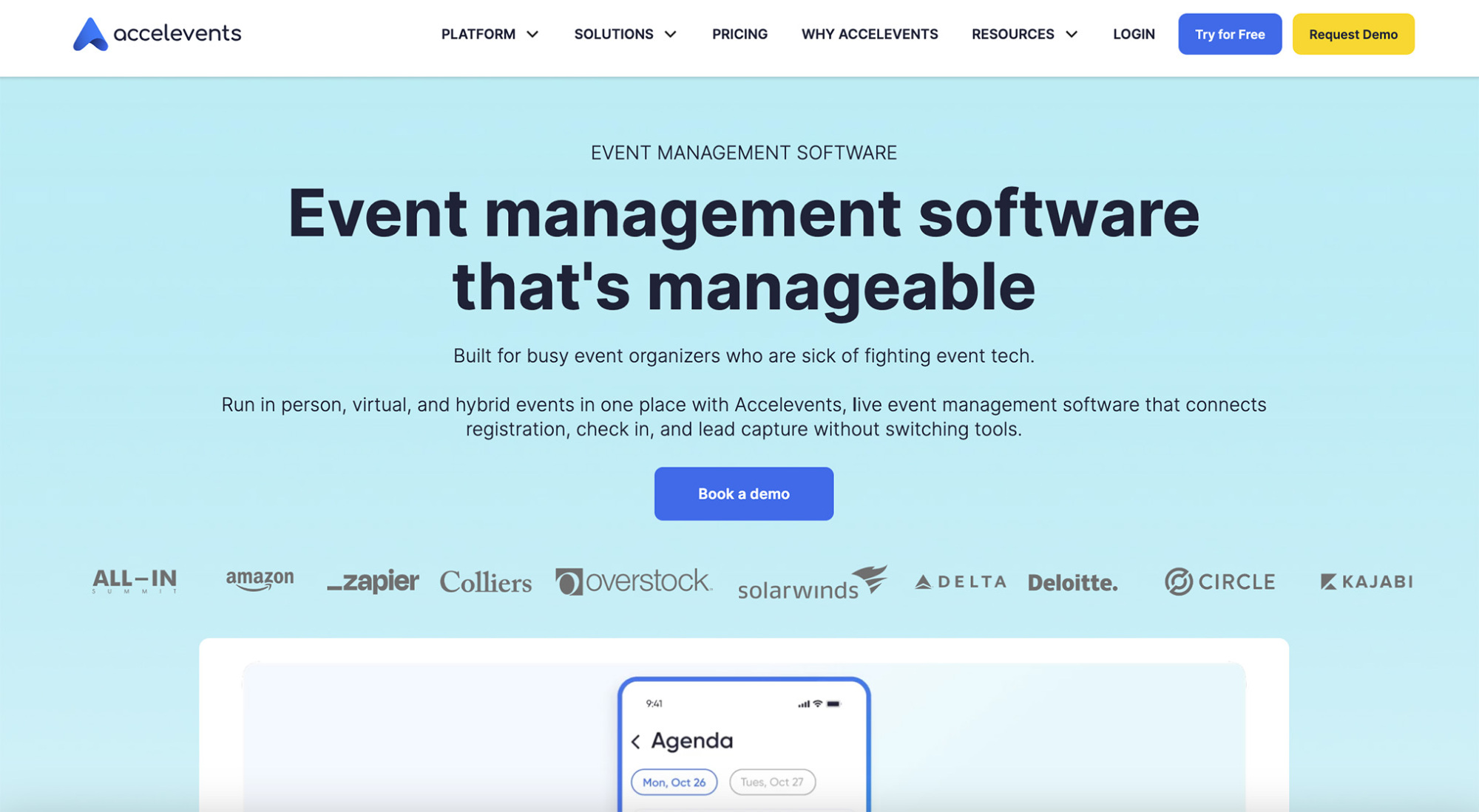 Accelevents is an all-in-one event management platform designed for virtual, hybrid, and in-person events. It combines ticketing, registration, event websites, and attendee communications in a single interface, with a strong focus on ease of use. Accelevents also offers built-in analytics, check-in tools, and promotional features, making it a versatile option for organisers who want a broad feature set without heavy technical complexity. The platform is well suited to teams looking for a flexible, general-purpose solution across different event formats.