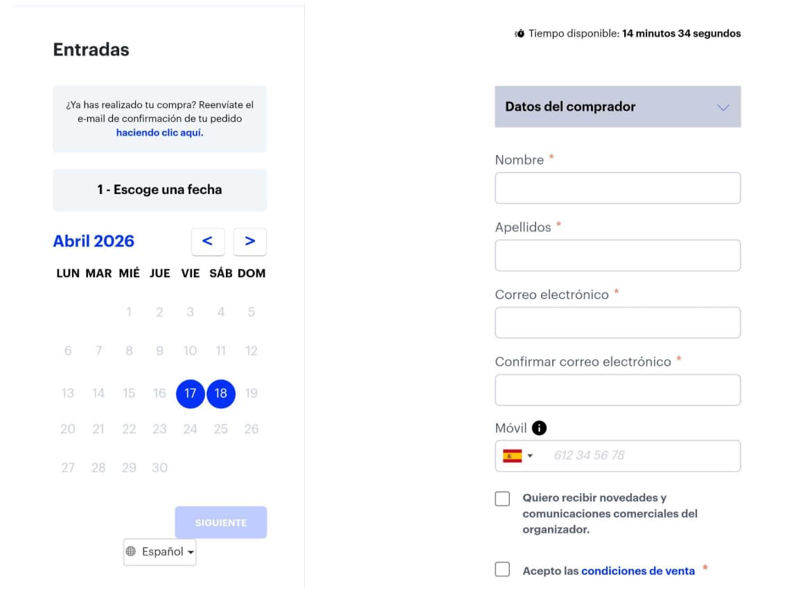- Pedidos relacionados con el evento (comida, camisetas, packs): integra directamente una opción de pago online y genera un recibo o una entrada de confirmación.