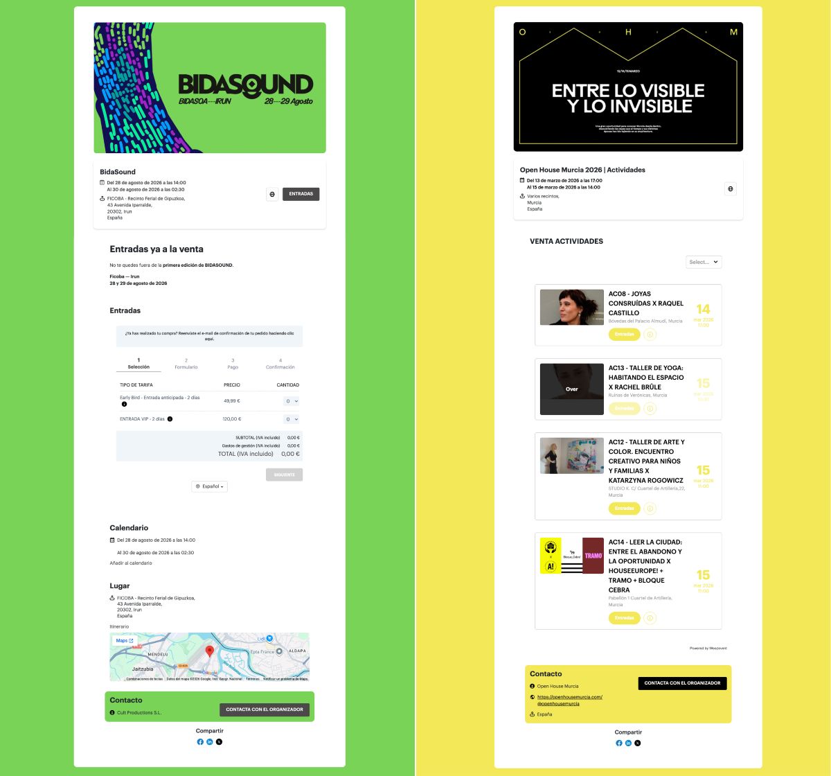 - Microsite del evento para la venta de entradas personalizable.