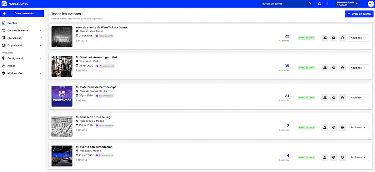 Weezevent destaca como una plataforma de venta de entradas especialmente completa y accesible. Está pensada para organizadores que quieren lanzar su venta online rápidamente, mantener el control sobre su operativa y acompañar el crecimiento de sus eventos, tanto si se trata de un evento puntual como de un lanzamiento más complejo con varias fases, distintos tipos de entradas y reglas de aforo más avanzadas.