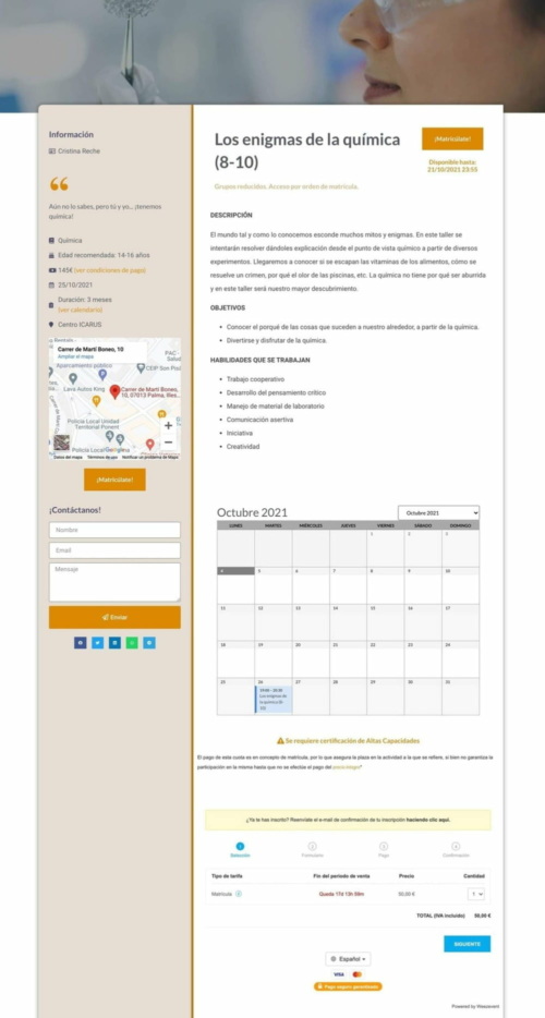 Ofrece la opción de reservar online y cobrar in situ el día del evento, u opta por una opción de pago online.