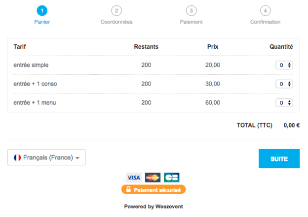 Lors de cet événement, vous souhaitez proposer des boissons à vos participants? Grâce au cross-selling vous pourrez leur proposer votre carte de boisson lors de leur achat de billet. De cette façon, vous pourrez plus aisément anticiper les besoins de vos participants.