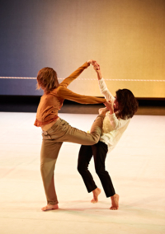 Un marathon de danse pour trois femmes, une «danse moderne» qui célèbre le présent. Hier et demain n’intéressent nullement ces trois grâces. Ce qui compte, c’est le hic et nunc et le mouvement de leurs pieds.