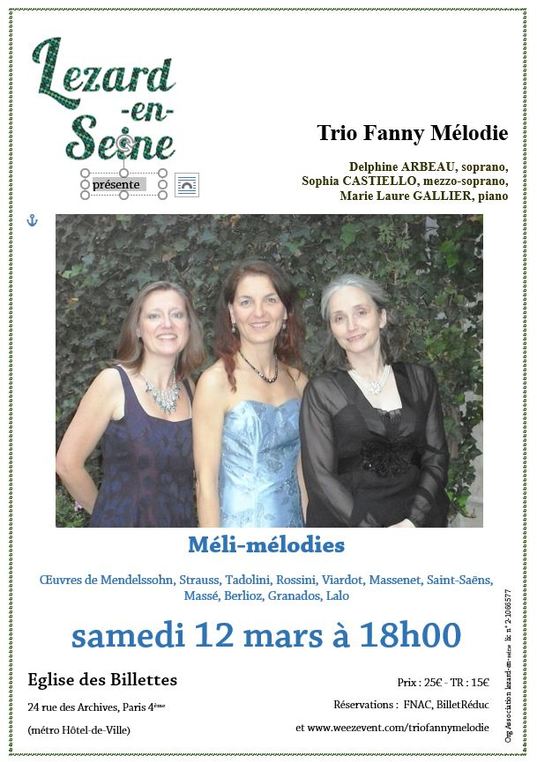 Concert du Trio Fanny Mélodie, qui comprend Delphine , soprano, Sophia Castiello, mezzo-soprano, et Marie-Laure Gallier, piano.